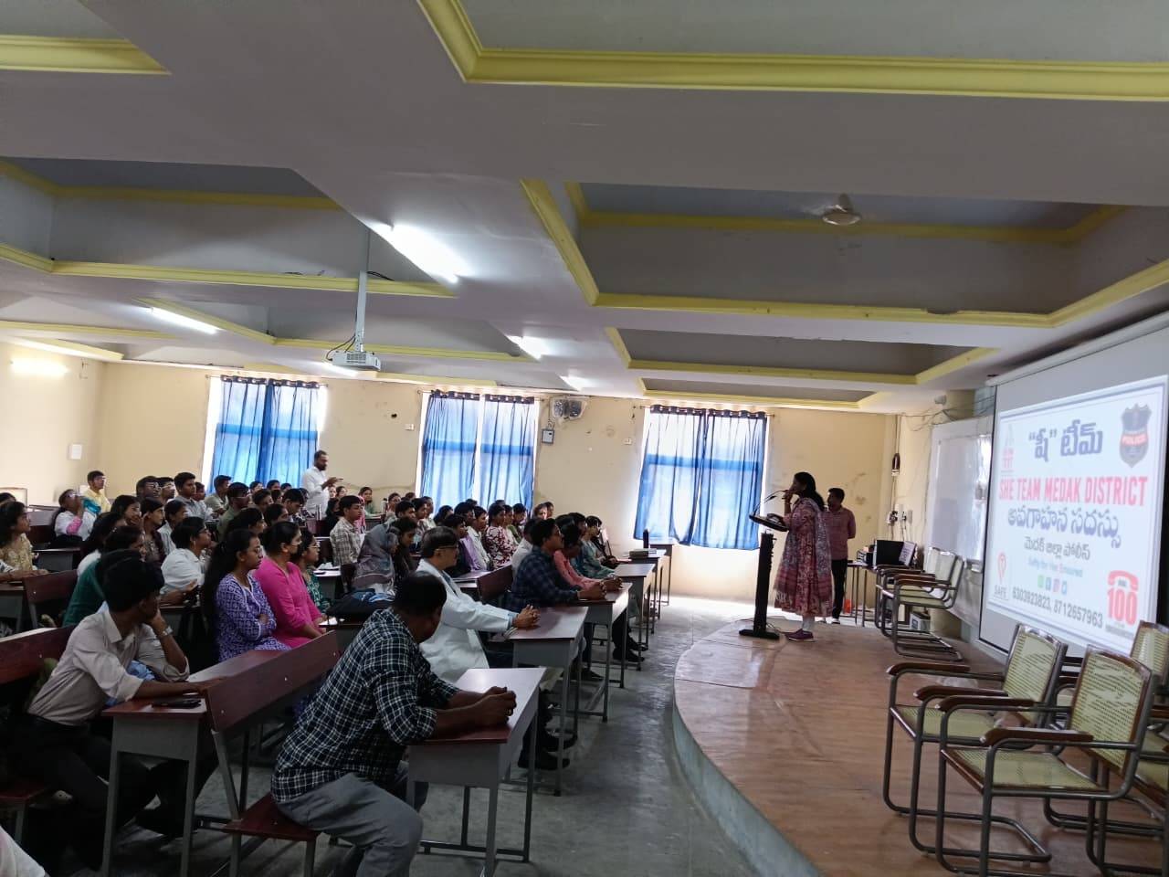 మెదక్ జిల్లా కేంద్రంలోని ప్రభుత్వ మెడికల్ కళాశాలలో ప్రిన్సిపాల్ డాక్టర్ నితిన్ కాబ్ర .ఎండి. డియం.ఆధ్వర్యంలో బుధవారం షీ టీమ్ బృందం అవగాహన కార్యక్రమం నిర్వహించారు.ఈ సందర్భంగా షీ టీం సభ్యులు మాట్లాడుతూ